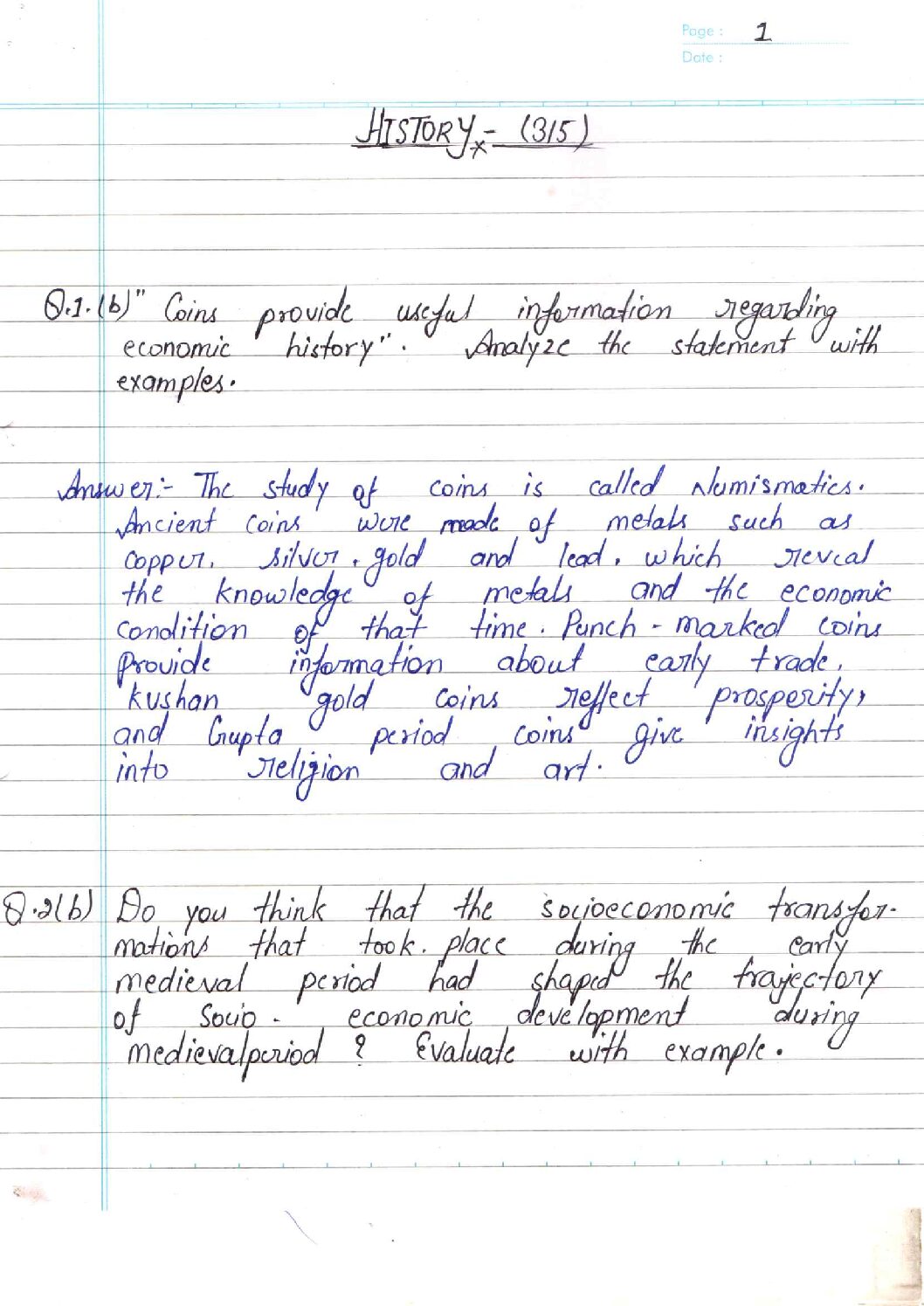 Nios History 315 Solved Assignment (Handwritten Scanned Copy) English Medium 2025-26
