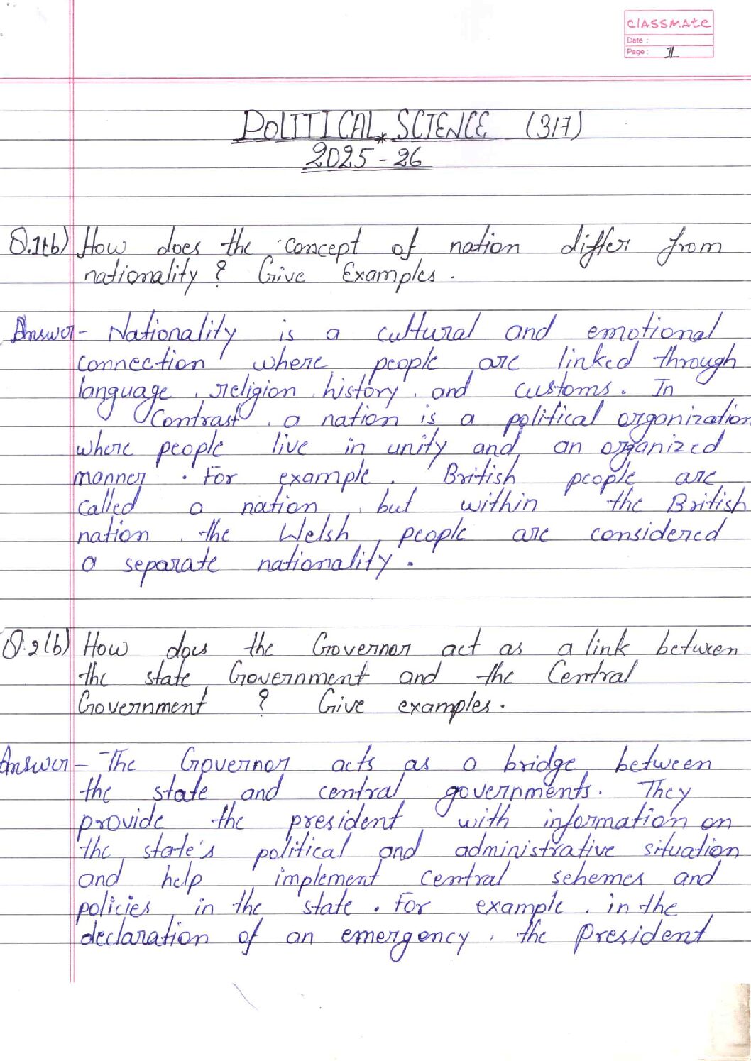 Nios Political Science 317 Solved Assignment (Handwritten Scanned Copy) English Medium 2025-26