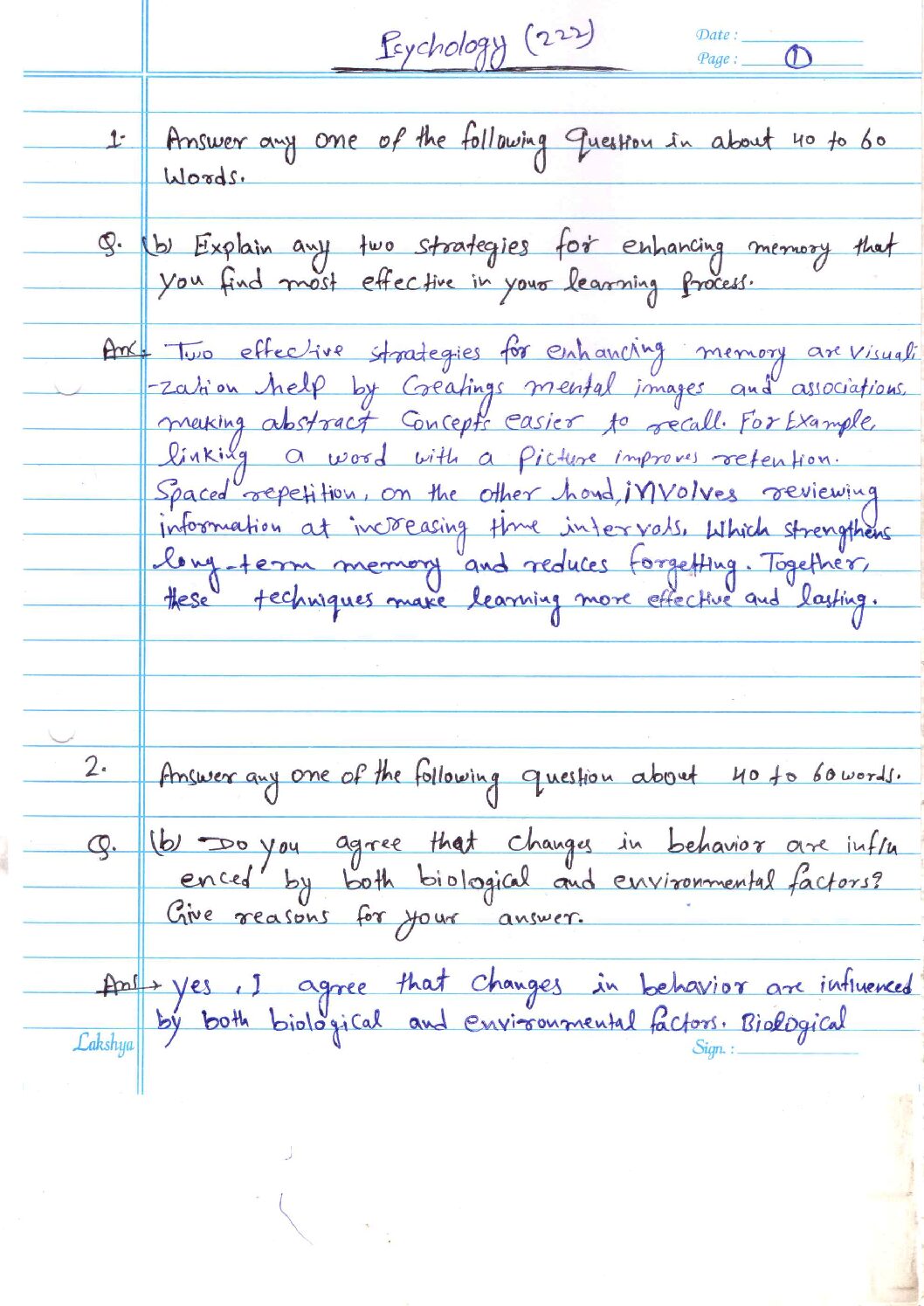 Nios Psychology 222 Solved Assignment Handwritten Copy (Scanned pdf) English Medium For April Exam 2025-26