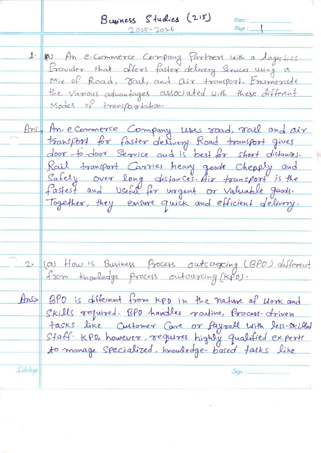Nios Business Study 215 Solved Assignment Handwritten Copy (Scanned pdf) English Medium For April Exam 2025-26