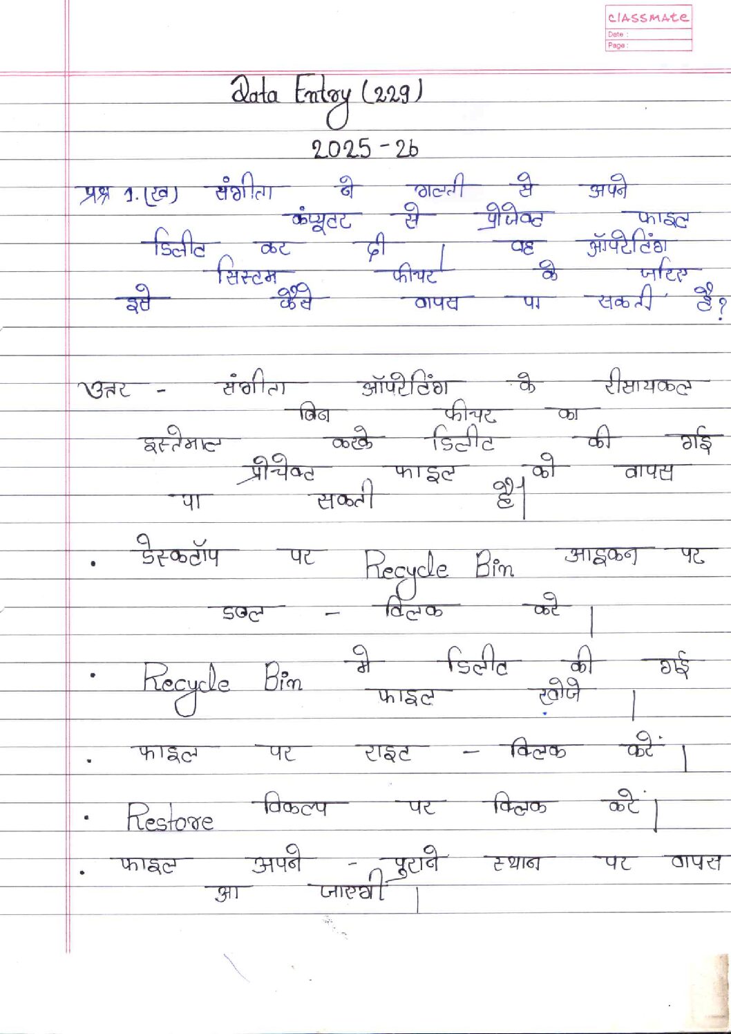 NIOS DATA ENTRY TMA (229) SOLVED Hindi Medium In PDF 2023-24